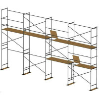 Приставные леса строительные рамные предназначены для выполнения наружных фасадных и отделочных работ зданий. Данная модель ЛРСП-40 предназначена для выполнения работ на высоте до 40 метров. Леса строительные рамные ЛРСП-40 изготовлены в соответствии с ГОСТ 27321-87 и имеют необходимый сертификат, подтверждающий их качество и надежность. Материал изготовления – стальные трубы диаметром 42 мм. Конструкция лесов легко и удобно собирается по принципу «труба в трубу». Собранные леса крепятся к фасаду здания с помощью надежных анкеров, что обеспечивает их устойчивость и безопасную работу.